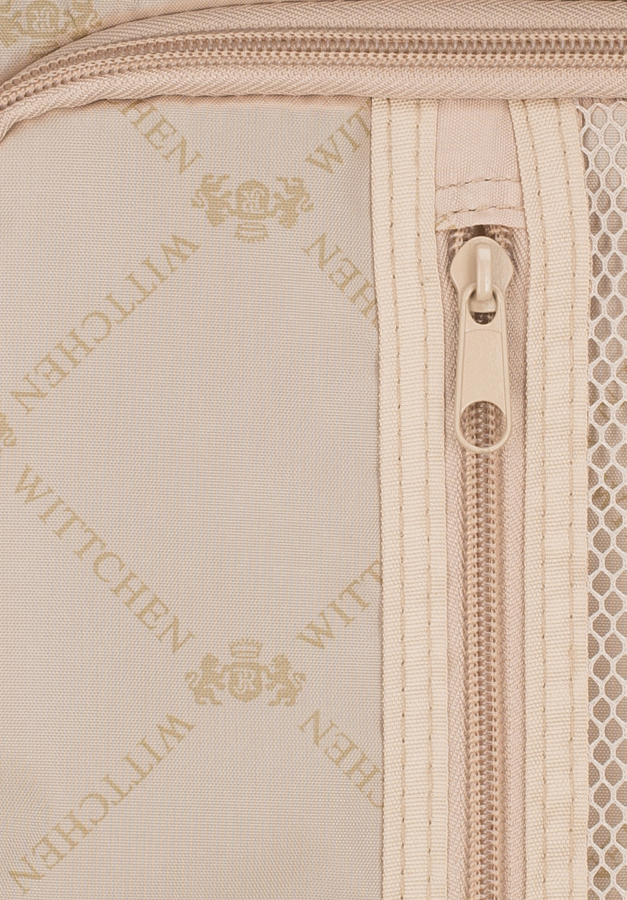 Walizki wykonane zostały z polikarbonu z matowym wykończeniem. To designerski projekt z lśniącymi okuciami w kolorze różowego złota. Kółka wykonane z tworzywa sztucznego ABS z elastyczną powłoką. Wnętrze bagażu pokrywa beżowa podszewka z logo WITTCHEN.