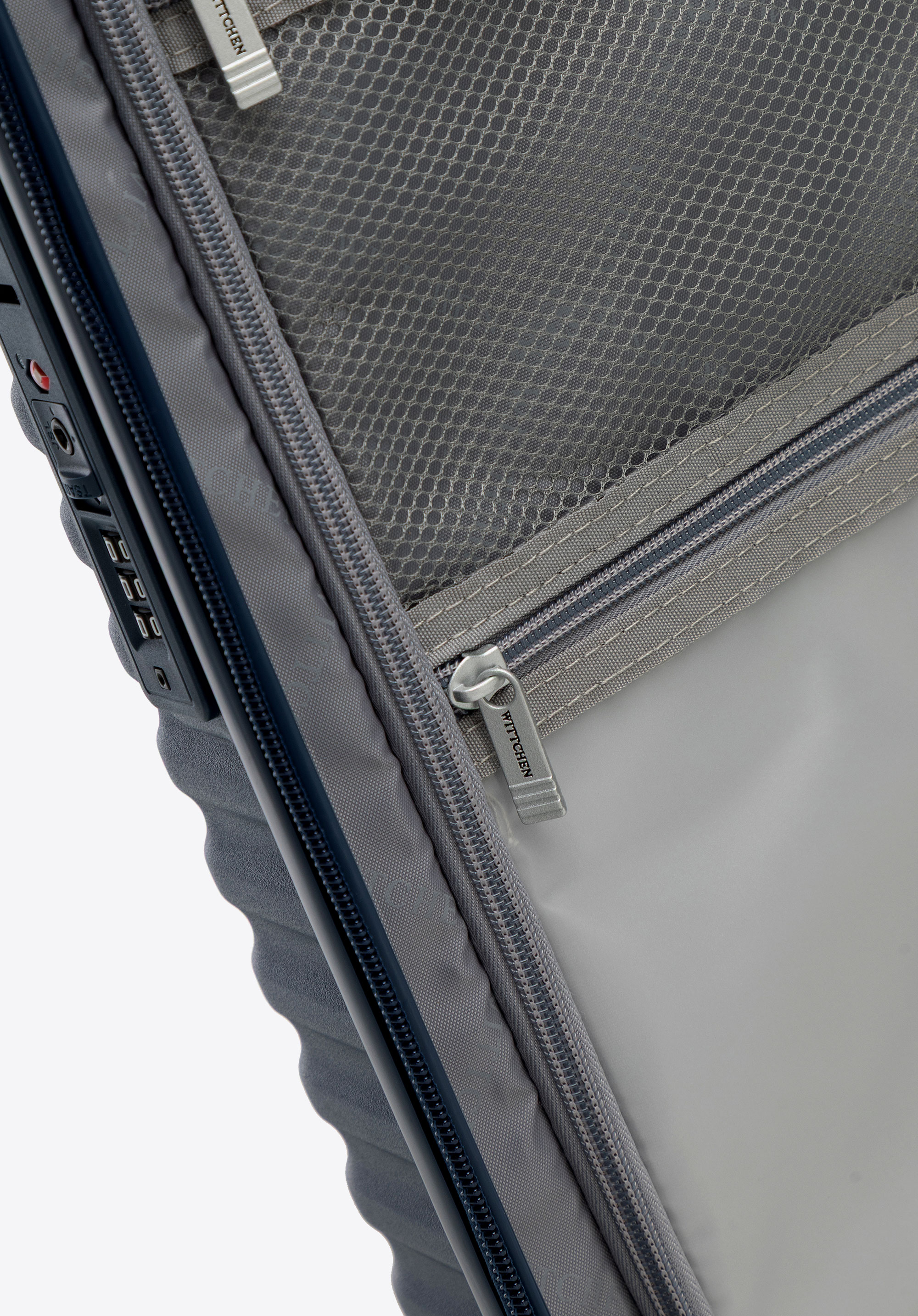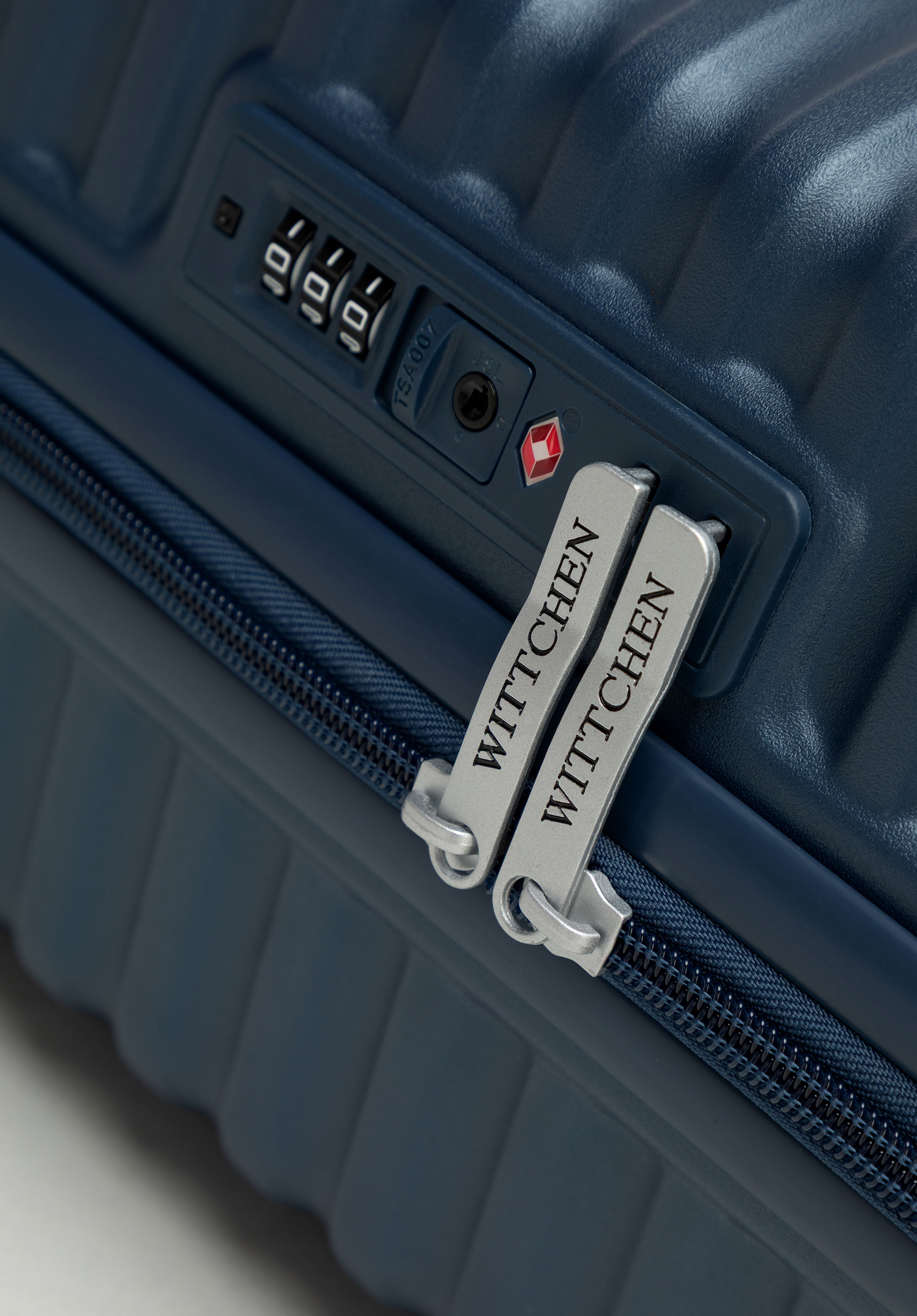 - Stabilność: 4 boczne nóżki w średniej i dużej walizce zapewniają stabilne i bezpieczne ustawienie bagażu na boku.
