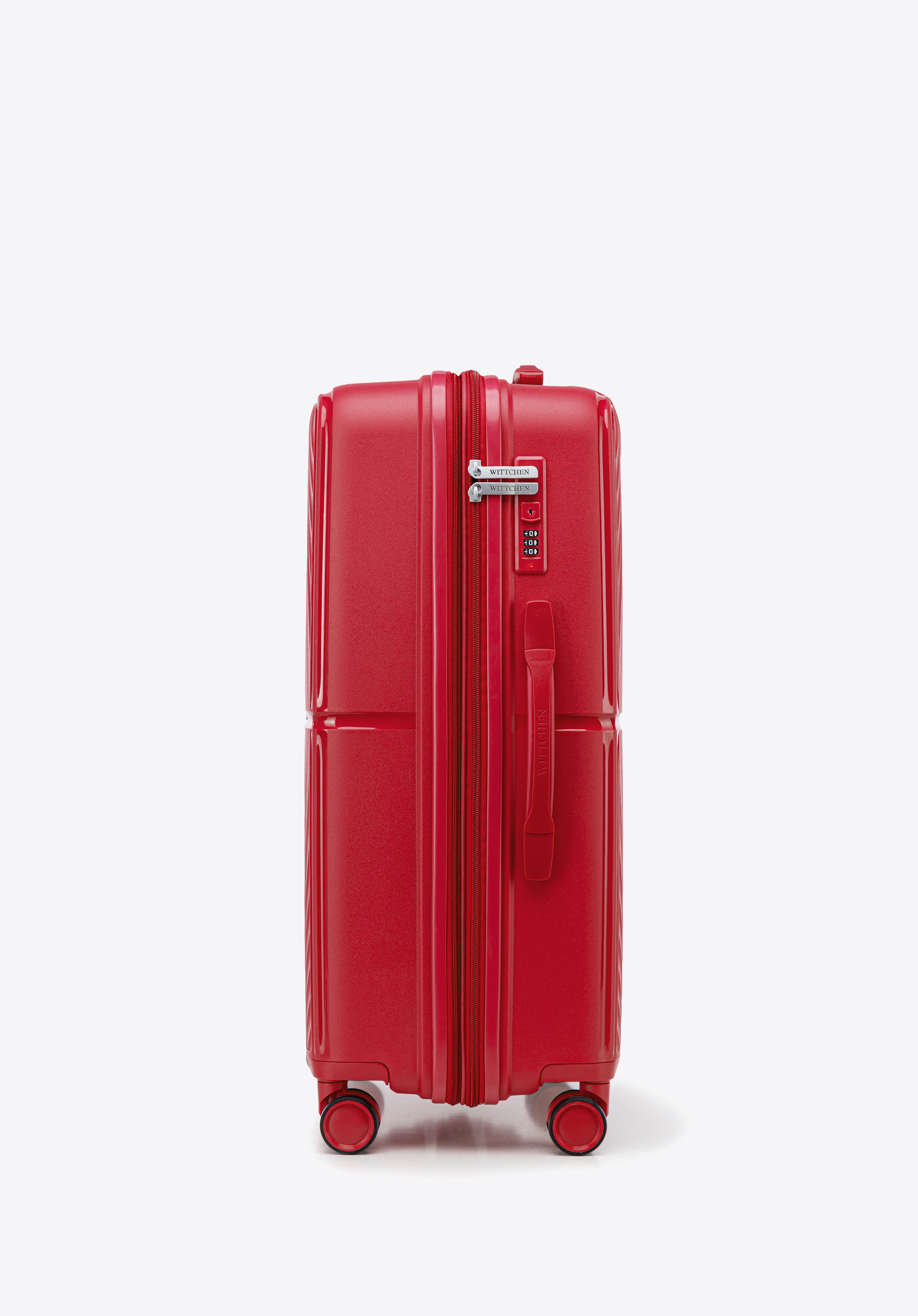 - Stabilność: W średniej i dużej walizce 4 boczne nóżki gwarantują stabilne postawienie bagażu na boku.